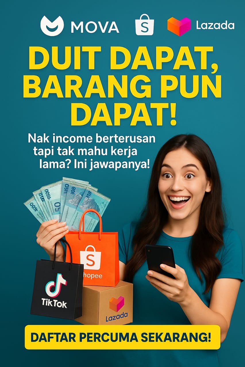 Lebih menarik, anda tidak terikat dengan satu kedai sahaja. MOVA bekerjasama dengan ribuan jenama dan platform besar seperti TikTok Shop, Shopee, dan Lazada. Jadi, pilihan anda tetap luas -- sama seperti shopping biasa, cuma kali ini ada ganjaran tambahan.